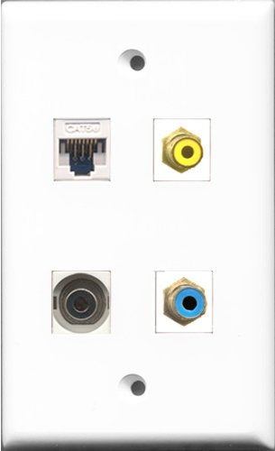 RiteAV 1 Port RCA Yellow and 1 Port RCA Blue and 1 Port 3.5mm and 1 Port Cat5e Ethernet White Wall Plate
