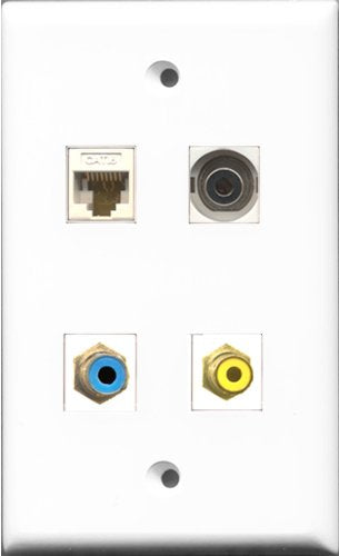 RiteAV 1 Port RCA Yellow and 1 Port RCA Blue and 1 Port 3.5mm and 1 Port Cat6 Ethernet White Wall Plate
