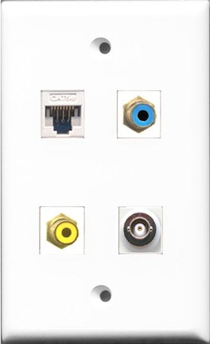 RiteAV 1 Port RCA Yellow and 1 Port RCA Blue and 1 Port BNC and 1 Port Cat5e Ethernet White Wall Plate