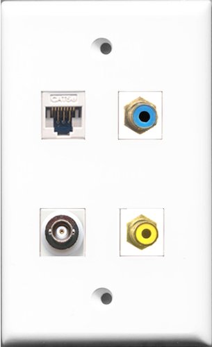 RiteAV 1 Port RCA Yellow and 1 Port RCA Blue and 1 Port BNC and 1 Port Cat5e Ethernet White Wall Plate