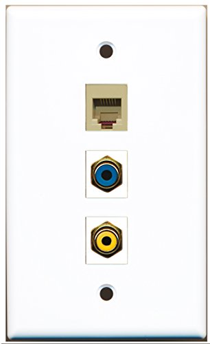 RiteAV - 1 Port RCA Yellow and 1 Port RCA Blue and 1 Port Phone RJ11 RJ12 Beige Wall Plate