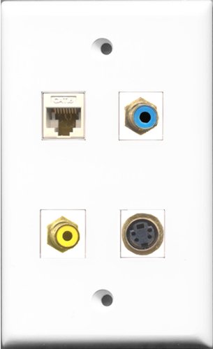 RiteAV 1 Port RCA Yellow and 1 Port RCA Blue and 1 Port S-Video and 1 Port Cat6 Ethernet White Wall Plate