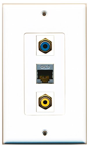 RiteAV - 1 Port RCA Yellow and 1 Port RCA Blue and 1 Port Shielded Cat6 Ethernet Decorative Wall Plate Decorative