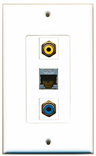 RiteAV - 1 Port RCA Yellow and 1 Port RCA Blue and 1 Port Shielded Cat6 Ethernet Decorative Wall Plate Decorative
