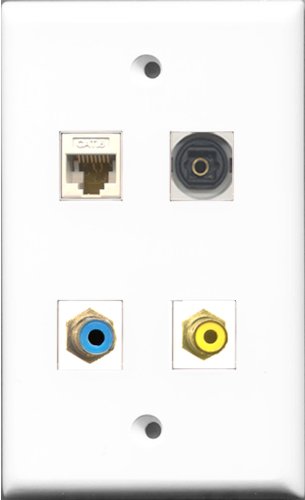 RiteAV 1 Port RCA Yellow and 1 Port RCA Blue and 1 Port Toslink and 1 Port Cat6 Ethernet White Wall Plate
