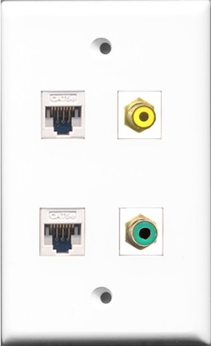 RiteAV - and 1 Port RCA Yellow and 1 Port RCA Green 2 Port Cat5e Ethernet White Wall Plate