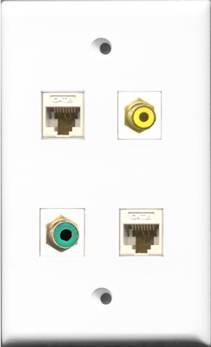 RiteAV - and 1 Port RCA Yellow and 1 Port RCA Green 2 Port Cat6 Ethernet White Wall Plate