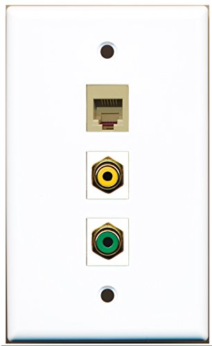 RiteAV - 1 Port RCA Yellow and 1 Port RCA Green and 1 Port Phone RJ11 RJ12 Beige Wall Plate