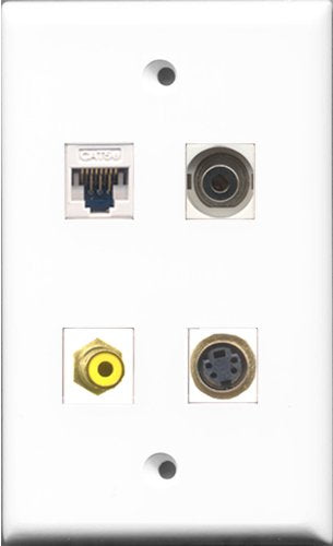 RiteAV - 1 Port RCA Yellow and 1 Port S-Video and 1 Port 3.5mm and 1 Port Cat5e Ethernet White Wall Plate