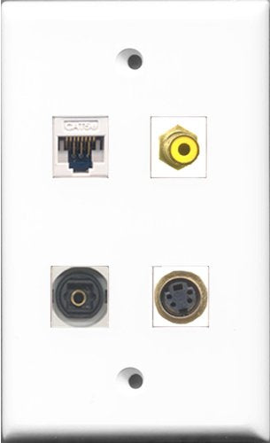 RiteAV 1 Port RCA Yellow and 1 Port S-Video and 1 Port Toslink and 1 Port Cat5e Ethernet White Wall Plate
