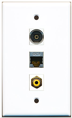 RiteAV - 1 Port RCA Yellow and 1 Port Shielded Cat6 Ethernet and 1 Port Toslink Digital Audio Wall Plate