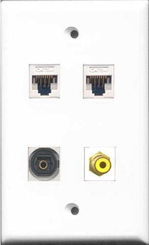 RiteAV - 1 Port RCA Yellow and 1 Port Toslink 2 Port Cat5e Ethernet White Wall Plate