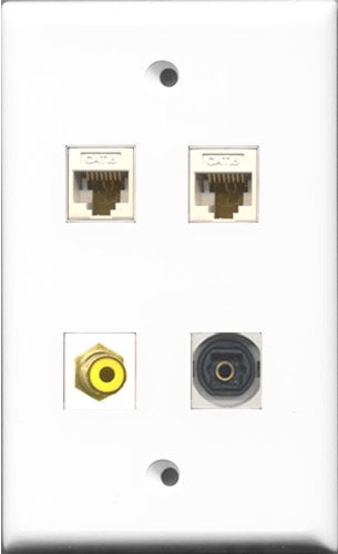 RiteAV 1 Port RCA Yellow and 1 Port Toslink 2 Port Cat6 Ethernet White Wall Plate