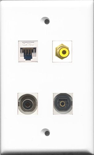 RiteAV 1 Port RCA Yellow and 1 Port Toslink and 1 Port 3.5mm and 1 Port Cat5e Ethernet White Wall Plate