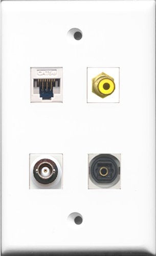 RiteAV 1 Port RCA Yellow and 1 Port Toslink and 1 Port BNC and 1 Port Cat5e Ethernet White Wall Plate