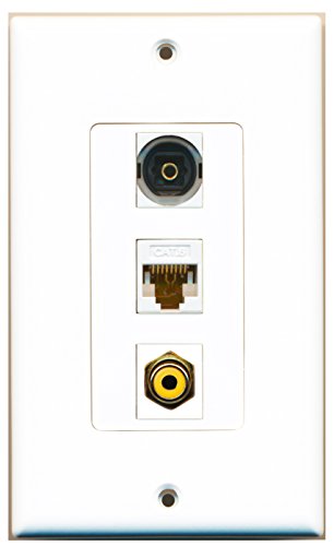 RiteAV - 1 Port RCA Yellow and 1 Port Toslink and 1 Port Cat6 Ethernet White Decorative Wall Plate Decorative