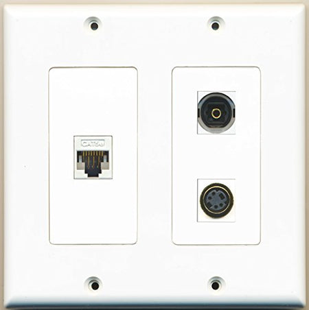 RiteAV - 1 Port S-Video 1 Port Toslink 1 Port Cat5e Ethernet White - 2 Gang Wall Plate