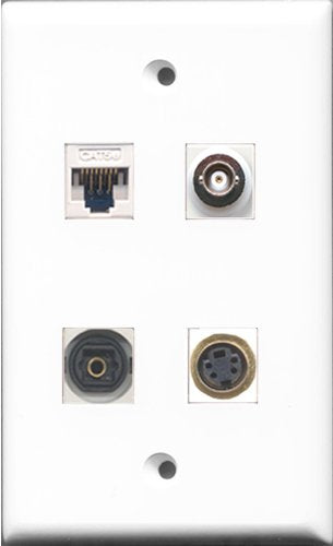 RiteAV - 1 Port S-Video and 1 Port Toslink and 1 Port BNC and 1 Port Cat5e Ethernet White Wall Plate