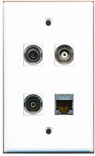 RiteAV - 1 Port Shielded Cat6 Ethernet 1 Port Toslink Digital Audio 1 Port 3.5mm 1 Port BNC Wall Plate