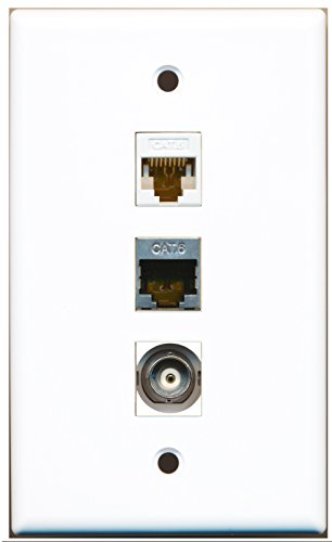 RiteAV - 1 Port Shielded Cat6 Ethernet and 1 Port BNC and 1 Port Cat6 Ethernet White Wall Plate