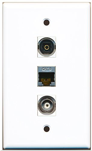 RiteAV - 1 Port Shielded Cat6 Ethernet and 1 Port Toslink Digital Audio and 1 Port BNC Wall Plate