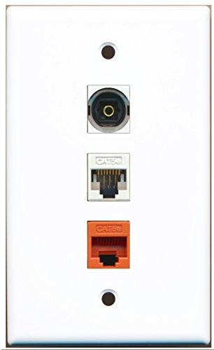 RiteAV - 1 Port Toslink 1 Cat5e Ethernet White 1 Cat5e Ethernet Orange Wall Plate