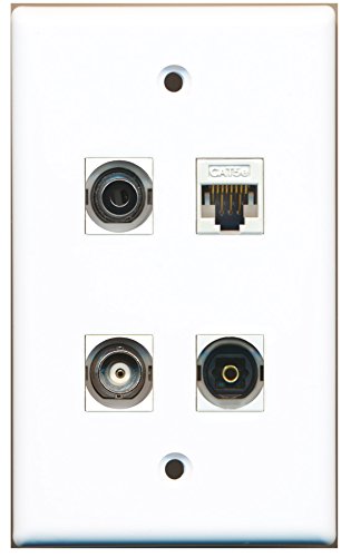 RiteAV - 1 Port Toslink 1 Port 3.5mm 1 Port BNC 1 Port Cat5e Ethernet White Wall Plate