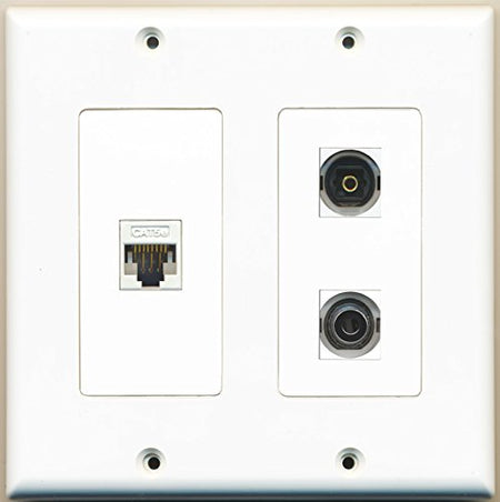 RiteAV - 1 Port Toslink 1 Port 3.5mm 1 Port Cat5e Ethernet White - 2 Gang Wall Plate