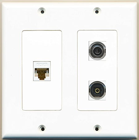 RiteAV - 1 Port Toslink 1 Port 3.5mm 1 Port Cat6 Ethernet White - 2 Gang Wall Plate