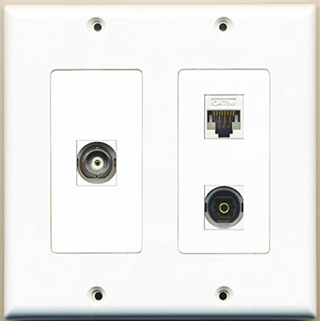 RiteAV - 1 Port Toslink Digital Audio 1 Port BNC 1 Port Cat5e Ethernet White - 2 Gang Wall Plate