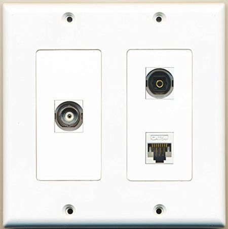 RiteAV - 1 Port Toslink Digital Audio 1 Port BNC 1 Port Cat5e Ethernet White - 2 Gang Wall Plate