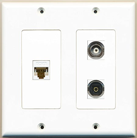 RiteAV - 1 Port Toslink 1 Port BNC 1 Port Cat6 Ethernet White - 2 Gang Wall Plate
