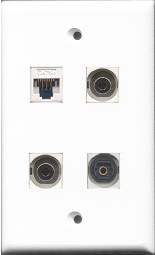 RiteAV - 1 Port Toslink 2 Port 3.5mm and 1 Port Cat5e Ethernet White Wall Plate