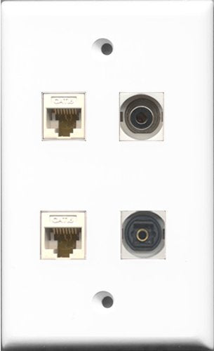 RiteAV 1 Port Toslink and 1 Port 3.5mm 2 Port Cat6 Ethernet White Wall Plate