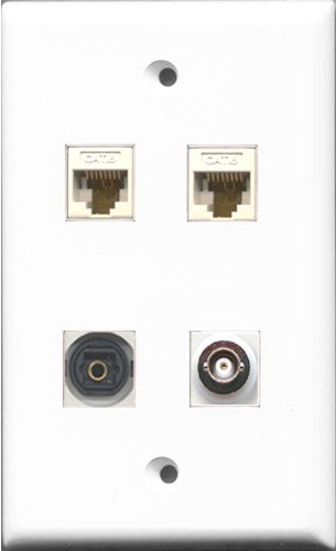RiteAV 1 Port Toslink and 1 Port BNC 2 Port Cat6 Ethernet White Wall Plate