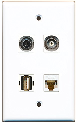 RiteAV - 1 Port USB A-A 1 Port 3.5mm 1 Port BNC 1 Port Cat6 Ethernet White Wall Plate