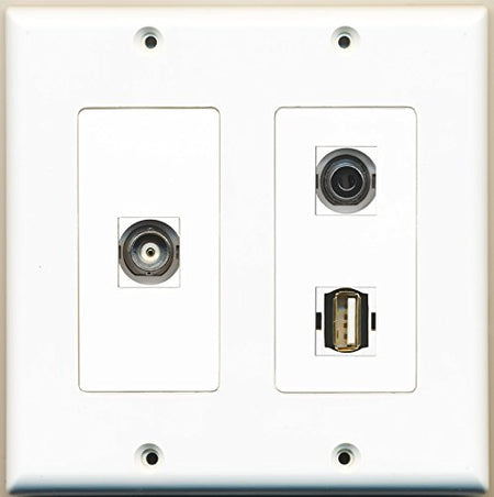 RiteAV - 1 Port USB A-A 1 Port 3.5mm 1 Port BNC - 2 Gang Wall Plate
