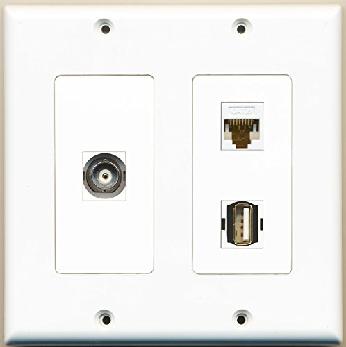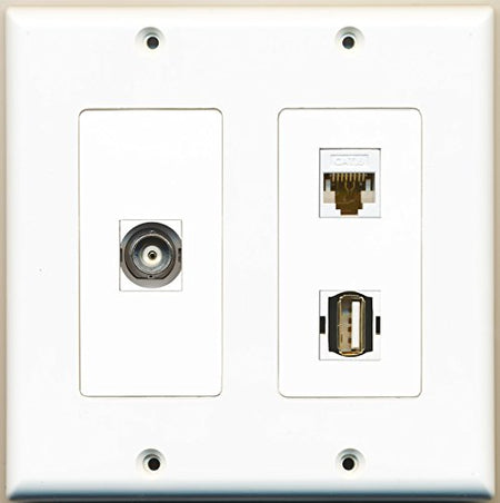 RiteAV - 1 Port USB A-A F/F 1 Port BNC 1 Port Cat6 Ethernet White - 2 Gang Wall Plate