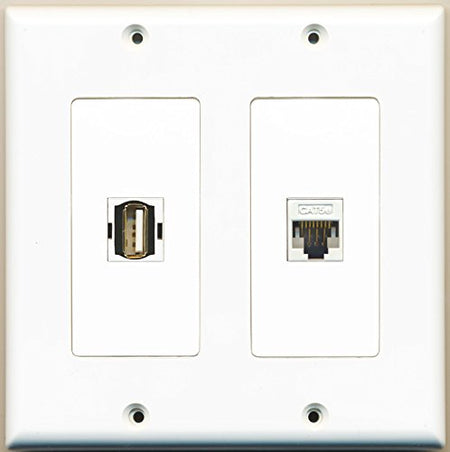 RiteAV - 1 Port USB A-A 1 Port Cat5e Ethernet White - Dual Gang Wall Plate