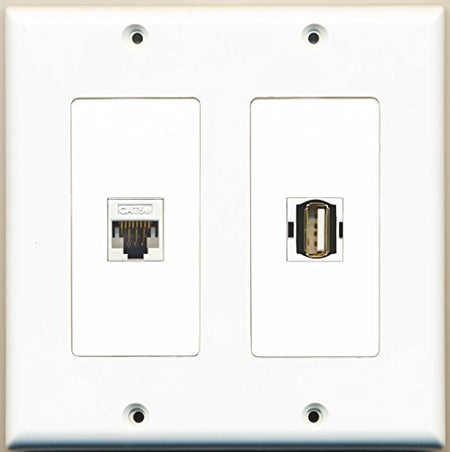 RiteAV - 1 Port USB A-A 1 Port Cat5e Ethernet White - Dual Gang Wall Plate