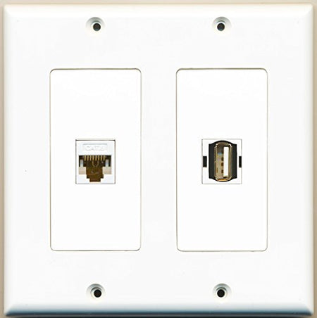 RiteAV - 1 Port USB A-A 1 Port Cat6 Ethernet White - Dual Gang Wall Plate