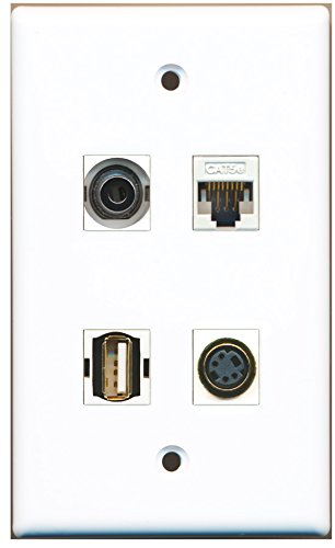 RiteAV - 1 Port USB A-A 1 Port S-Video 1 Port 3.5mm 1 Port Cat5e Ethernet White Wall Plate