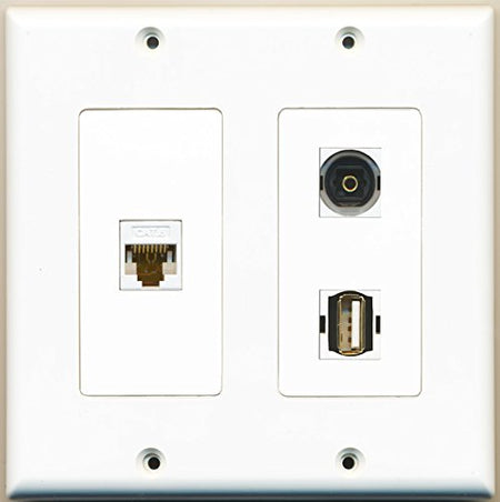 RiteAV - 1 Port USB A-A 1 Port Toslink 1 Port Cat6 Ethernet White - 2 Gang Wall Plate