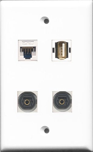 RiteAV 1 Port USB A-A 2 Port Toslink and 1 Port Cat5e Ethernet White Wall Plate