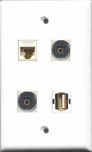 RiteAV 1 Port USB A-A 2 Port Toslink and 1 Port Cat6 Ethernet White Wall Plate