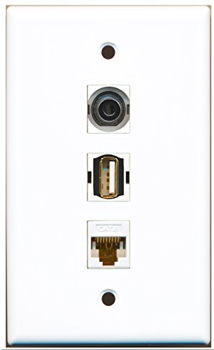 RiteAV - 1 Port USB A-A and 1 Port 3.5mm and 1 Port Cat6 Ethernet White Wall Plate