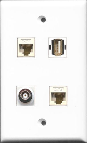 RiteAV 1 Port USB A-A and 1 Port BNC 2 Port Cat6 Ethernet White Wall Plate