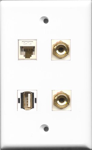 RiteAV 1 Port USB A-A and 1 Port Cat6 Ethernet White 2 Port Banana Speaker Wall Plate