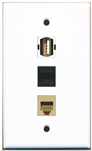 RiteAV - 1 Port USB A-A and 1 Port Phone RJ11 RJ12 Beige and 1 Port Cat5e Ethernet Black Wall Plate