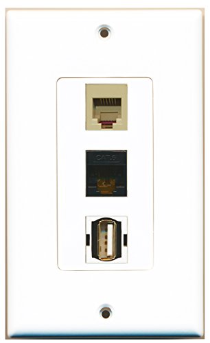 RiteAV - 1 Port USB A-A and 1 Port Phone RJ11 RJ12 Beige and 1 Port Cat6 Ethernet Black Decorative Wall Plate Decorative
